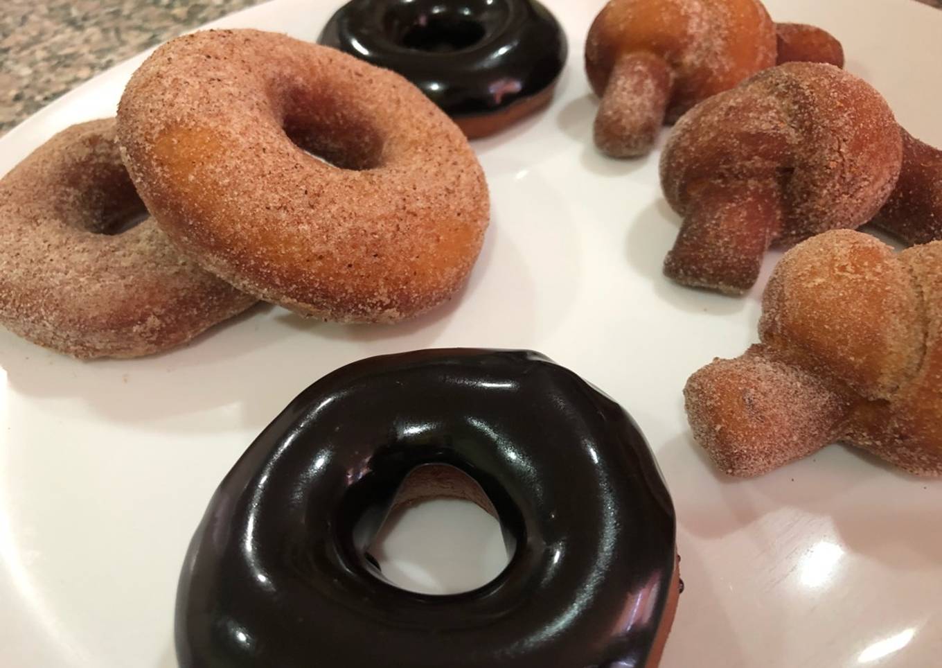 - Or abh liquid chocolate me kareeb 90 gm sugar powder 30 gm cinnamon powder 30 gm. or abh fried donuts ke upar aply karein last me 20 gm sugar powder. or 10 gm cinnamon powder ko mix karein or garnish karein aap ke donuts ready hai